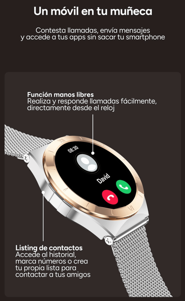 La vida no es cuadrada, y tu smartwatch tampoco debería serlo. Lya es el equilibrio perfecto entre tecnología y estilo, un reloj inteligente que se adapta a tu ritmo y a tu look sin esfuerzo. Su diseño redondo, sofisticado y versátil, combinado con funciones de salud, deporte y conectividad, lo convierten en un imprescindible para mujeres que quieren estar conectadas sin perder ni un ápice de elegancia. Además, gracias a sus 2 correas intercambiables de metal y silicona estarás siempre lista para lo que el día te depare. Porque si el tiempo vuela, mejor llevarlo con estilo.